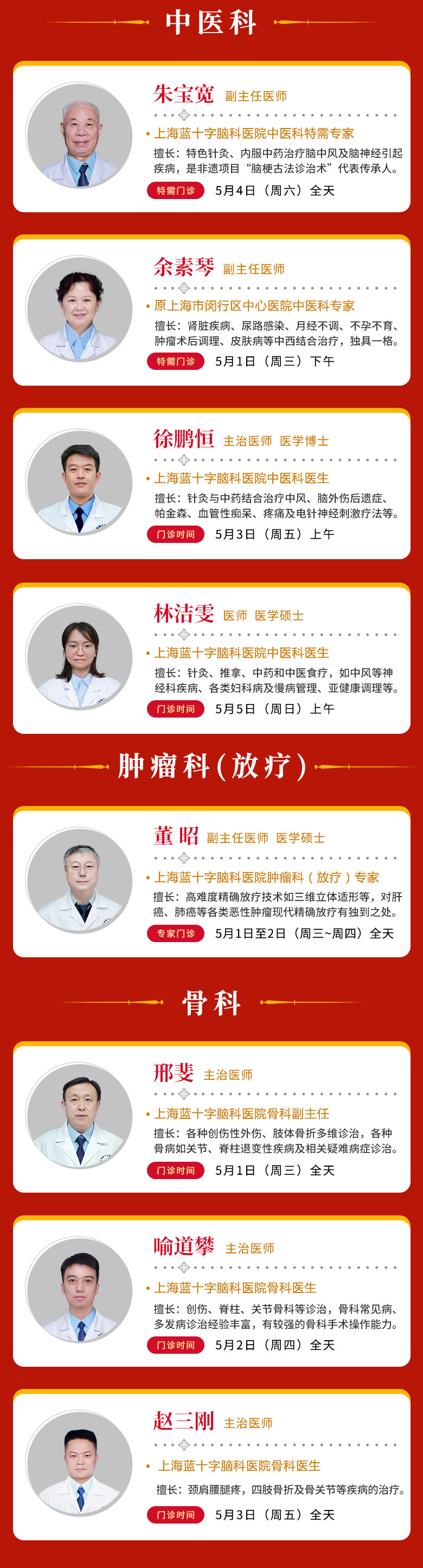 上一篇:直播预告 │ 4月19日19:30,第六届芝加哥大学医学中心—上海蓝十字脑科医院神经医学国际高峰论坛,精彩继续! 下一篇:【公告】上海蓝十字脑科医院2024年端午节假期门、急诊安排