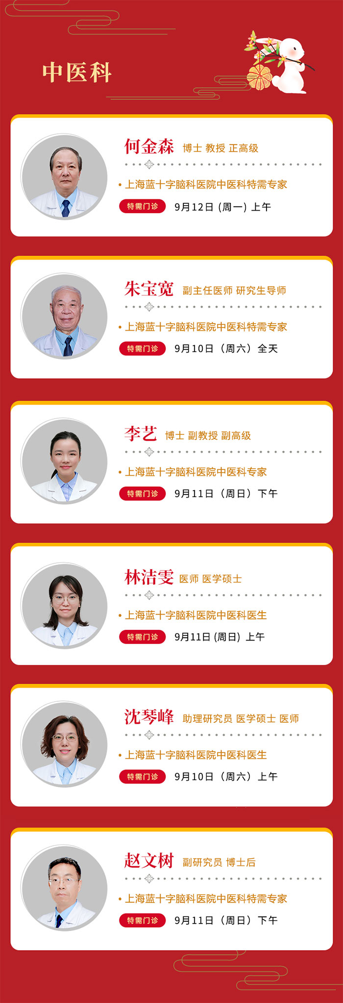 根据国务院节假日放假通知精神,结合医院实际情况,我院2022年中秋节假期间(9月10日-9月12日),门诊工作安排如下。
