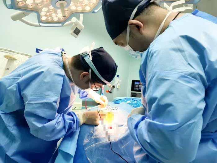 卢云鹤(左)团队为患者实施脊髓电刺激手术