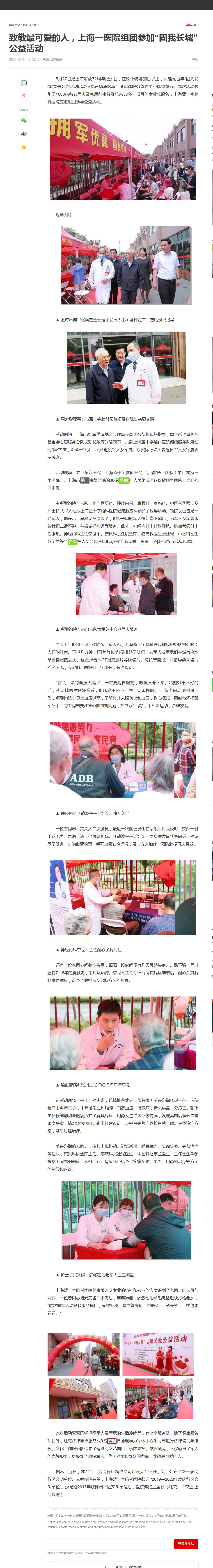 5月27日是上海解放72周年纪念日,在这个特别的日子里,庆建党百年“固我长城”关爱公益活动启动仪式在杨浦区新江湾军休服务管理中心隆重举行。本次活动吸引了1000余名老同志及家属前来接受总共30多个项目的专业化服务,上海蓝十字脑科医院应邀组团参与公益活动。