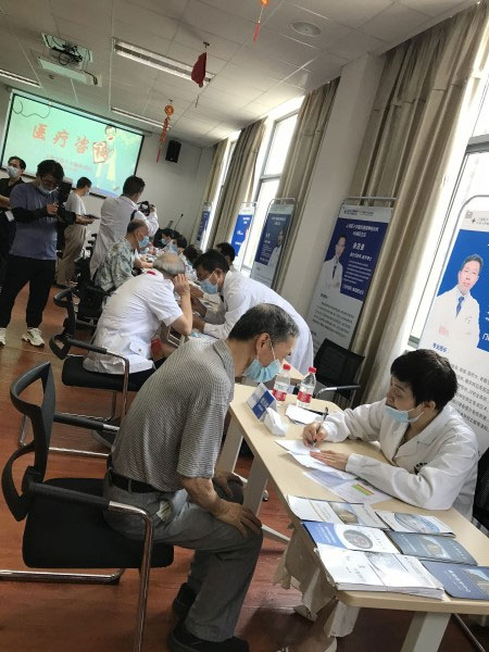 健康问询最受离退休老干部们的欢迎,此次健康问询服务队由上海蓝十字脑科医院院长项耀钧带队,脑血管病科、神经外科、神经内科主任,疼痛科、内科,中医科等主任医师及护士长共20多人参加,医院特意把便携式彩超仪及骨密度检测仪等带到现场,在一楼专门辟出一间房间为老干部服务。