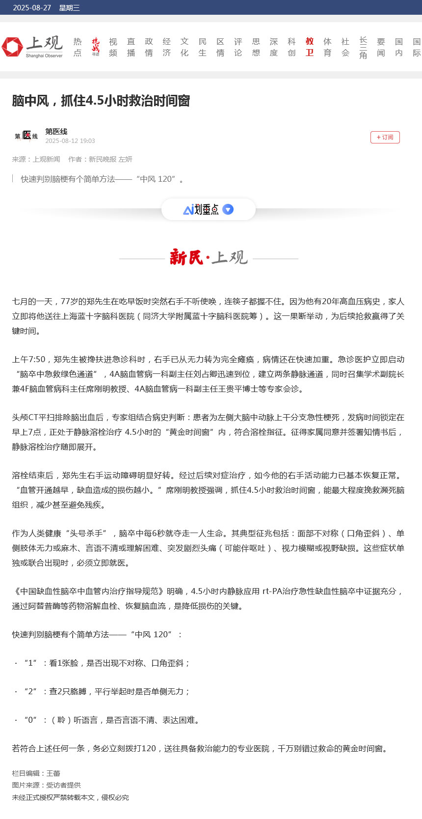 原文来源:上观新闻 |在北京时间2025年8月27日 8:00:00 网站截图。