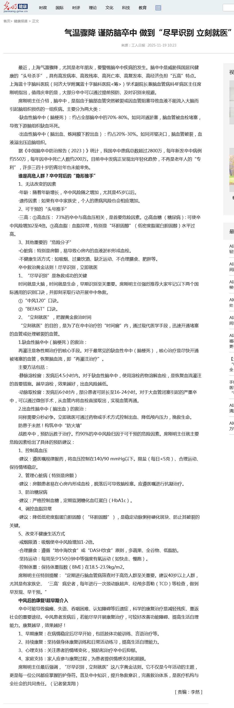 上一篇:上观新闻 | 气温骤降,卒中高发!专家:把握“黄金法则”为大脑抢时间 下一篇:没有了