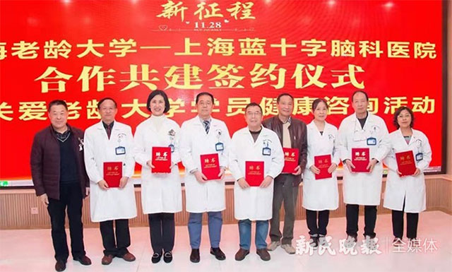 紧接着,濮圣奎代表上海老龄大学和项耀钧院长代表上海蓝十字脑科医院上台签约。