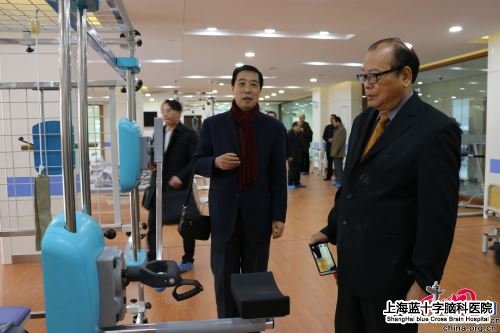 随后,在上海蓝十字名誉院长陈公白、副院长袁士宗等陪同下,台湾医事联盟协会神经外科专家团一行人对上海蓝 十字脑科医院新院进行了参观。据袁士宗副院长介绍,整个医院主体大楼占地2万多平米,总床位452张,其中ICU床位就占98张。上海万众医疗投资股份有限 公司总裁卓立强还特别提到,公司已与万兆地产协商合作,拟再扩建500张床位,形成拥有1000张床位的专业脑科医院。