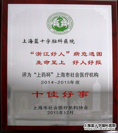 一直以来,上海蓝十字脑科医院履行着“治病救人、救死扶伤”的神圣使命,践行“效力社会、扶助弱势”的人情关怀,医人医心、热衷公益慈善,多次获 赞。2013年,上海蓝十字脑科医院也因“救助7岁舍身救母成植物人女童获康复”荣获2012-2013年度“国药杯”上海市社会医疗机构协会“十好 事”称号。