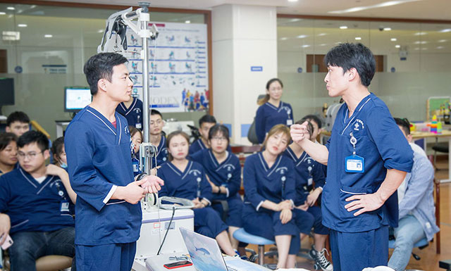 在彭建文眼里,康复治疗师和临床医生有所不同,它是一段时间内,甚至更长时间内都陪伴在患者身边,并对其进行一对一康复治疗的一种职业。治疗的成功与否直接关系到患者以后回归家庭、回归社会的生活质量问题,因此他对待每一位患者都极其认真和负责,能看到他们康复出院,这是他最大的心愿和成就!