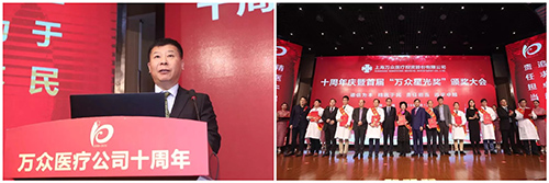2019年1月12日,上海万众医疗投资股份有限公司十周年庆典暨首届“万众星光奖”颁奖大会,在同济大学附属天佑医院国际会议厅隆重举行。