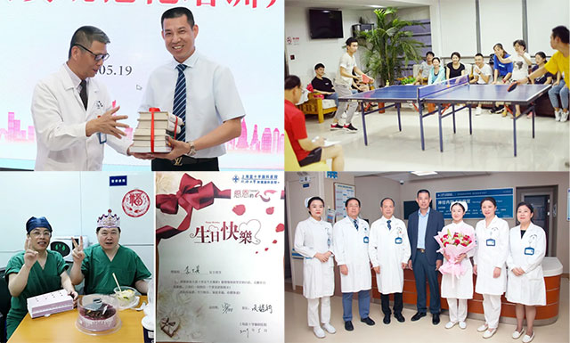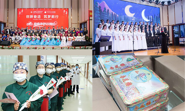 为了丰富医院职工的业余文化生活,设立了图书阅览室,供职工业余时间里阅读各类书籍,获得进一步成长;购置乒乓球桌让职工锻炼身体;组织二百多名职工到杭州西湖二日游,让职工放飞心情;在三八妇女节、端午节,中秋节及春节等为员工发放节日慰问品;年底举办由员工自编自导的“迎春晚会”;在职工生日时送上蛋糕和领导签名的生日贺卡;还组织60人的“蓝色梦幻”合唱团引吭高歌,等等,让职工感受到大家庭的温暖。