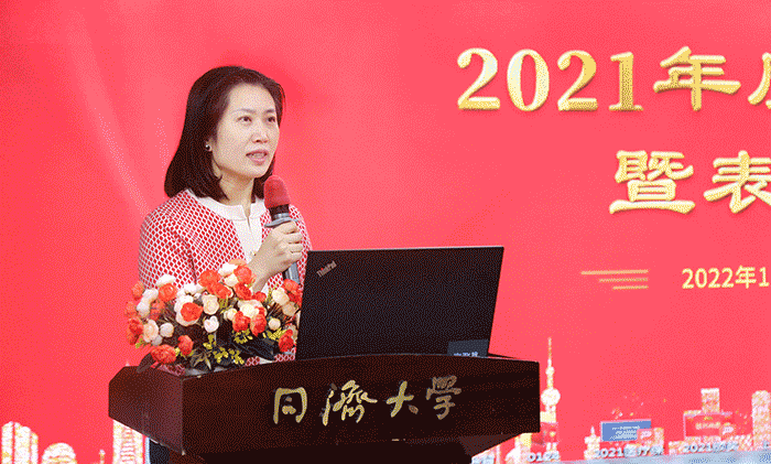 总经理兼党支部书记朱敏作医疗保障工作总结,肯定成绩、剖析问题、明确目标、指明方向。朱敏书记表示,2021年医疗保障工作卓有成效,全年无差错,推动了医院整体发展的脚步。人才梯队持续优化、财物管控全面统筹、总务保障有力有效、智慧医院有序推进、药械供应稳中有进、党建文化引领发展、品牌宣传内延外拓。朱敏书记继续强调,成绩面前要保持清晰认知,深刻剖析补齐短板,2022年要重点聚焦、做好“三个六”工程,即:六项重点、六种文化、六心理念。新的一年,希望大家继续保持高昂的斗志,乘势而上,再创佳绩。
