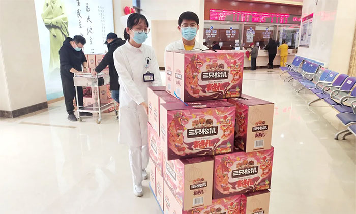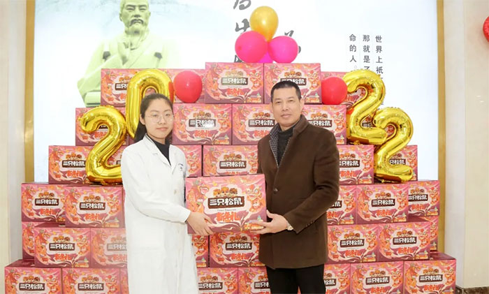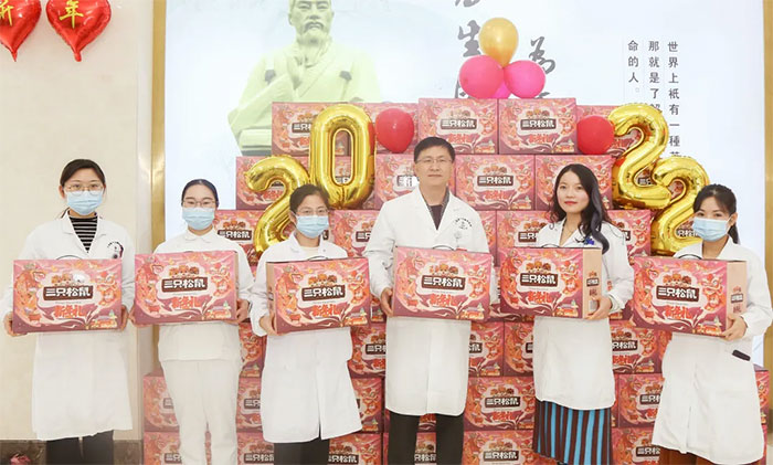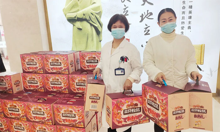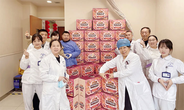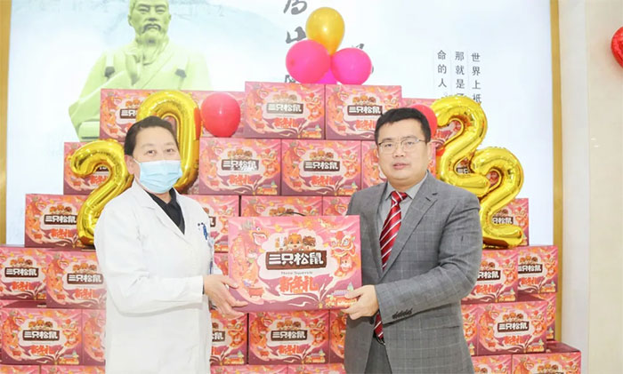 总经理兼党支部书记朱敏、院长项耀钧、副总经理兼工会主席吴春芳,以及郭荣峰、周咏梅、郭俊艳等医院领导,亲自将满含心意的大礼包递送到每一位员工手上,同时向大家表达了诚挚的问候和节日的祝福。