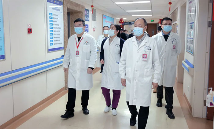 围绕医疗质量与安全、药品物资储备、医疗设备运行等重点工作,每到一处,院领导都详细听取科室负责人的工作汇报,全面了解科室运行情况。院领导叮嘱,务必做好节假日值守,针对急危重症患者加强管理并制定好相应预案,全力保障患者生命安全。