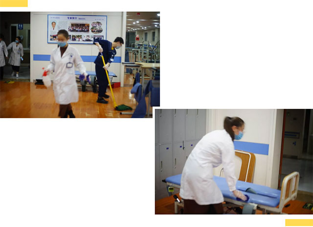 大年三十一大早,接到医院办公室关于暂停春节长假通知开始,上海蓝十字脑科医院康复科从主任姚金荣,到张雁到技师,物理因子辅助治疗师等等就开始了“连轴转”的防疫阻击战。