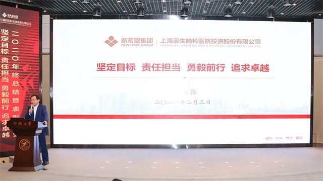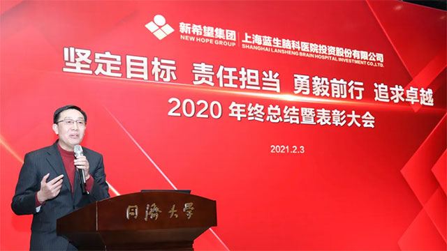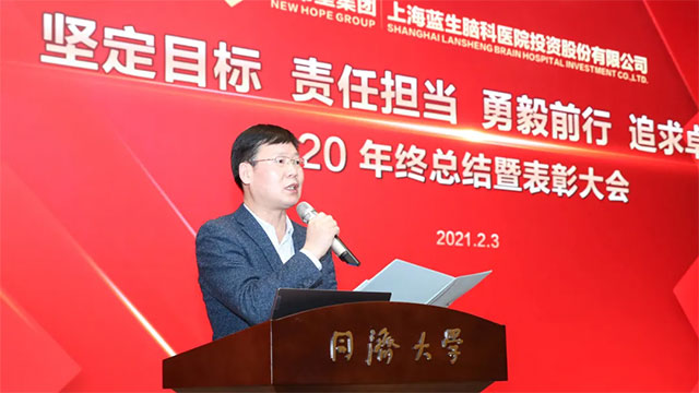 2月3日下午,上海蓝生脑科公司在同济大学附属天佑医院国际会议厅隆重举行2020年终总结暨表彰大会,传达学习新希望集团总经理大会主要精神,回顾“十三五”及2020年的发展成绩,总结过去五年积累的宝贵经验,展望“十四五”发展规划,部署2021年工作安排,动员全体员工坚定信念、奋发进取、脚踏实地、努力工作,为实现建成我国最大最强脑科医院连锁公司的目标不懈奋斗。公司领导、机关干部,医院科以上干部、临床医技科室主任、护士长,子公司部门以上干部,受表彰人员和储备人才等共270余人参加。常务副总裁刘诗强主持。
