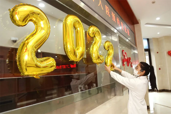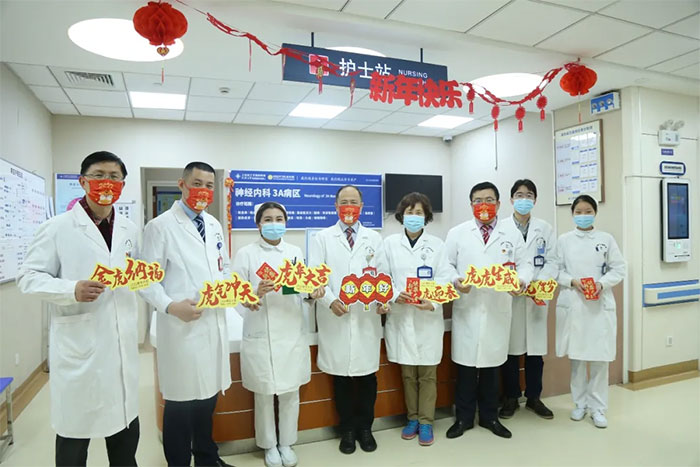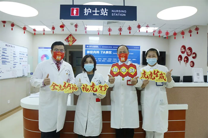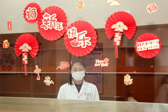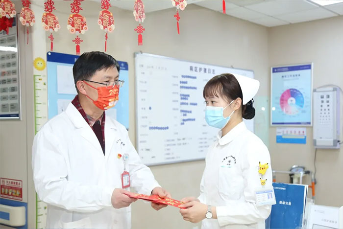 又是一年除夕夜,正当万家团圆时,医院所有楼层和病区,一如往昔,灯火通明,亮如白昼。唯一的不同,是在留守医务人员自发的精心装点下,各个楼层都充斥着浓浓的年味,给寒夜添了一份色彩,也让人心生无限依恋和温暖。