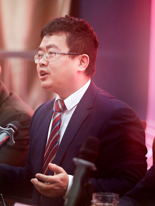 ▲总经理兼党支部书记朱敏介绍党建及社区健康共建工作情况