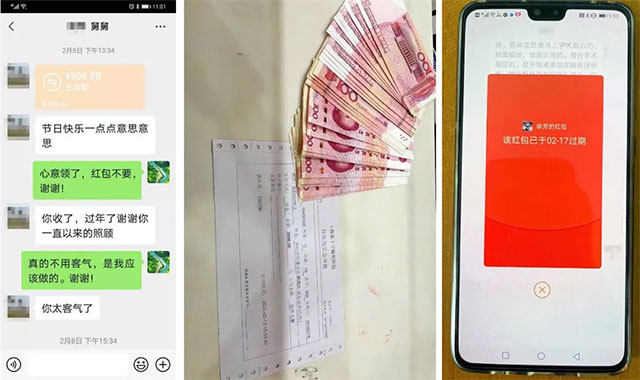 ▲ 春节假期,家属送的现金红包无一例外被婉拒