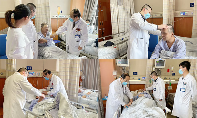 3B肿瘤科胡玉堂主任和黄运星等多位骨干医生放弃与家人团聚的机会,值守临床一线,确保患者安全。年三十,某三甲医院转来一位脑瘤术后三天的病人,该病人浅昏迷、心功能不全,肺部感染等症状,胡玉堂主任组织张庆成主任、李鲁萍主任,王晓东主任等进行会诊,各科密切协作,讨论处置方案,经治疗后,病人病情趋于稳定。