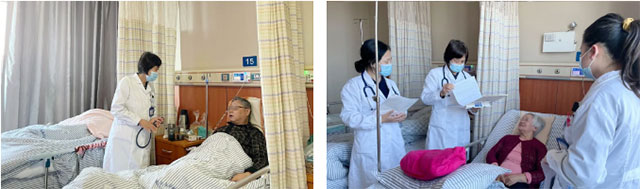 从除夕晚上开始,李奶奶一连两天都出现了紧急情况,周主任和医护人员迅速对其进行紧急抢救,在大家全力救治下,李奶奶最终转危为安。原来李奶奶患有多种基础性疾病,高血压病史20余年、脑梗、2型糖尿病、心房颤动、心脏病、肺部感染……其中最为严重的是心衰竭、肺部感染及大面积脑梗,像李奶奶这样危重的情况,周主任和医护人员一天会反复多次查看其情况,以便及时应对处理。