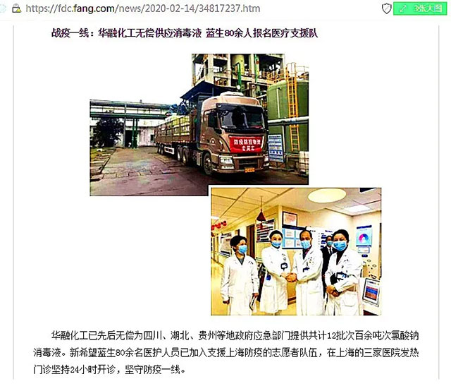 新希望集团旗下兴源环境120余名工程技术骨干日夜奋战,火速完成雷神山、火神山污水处理系统建设。新希望集团旗下新希望六和、新希望乳业、新希望地产、华融化工、鲜生活冷链物流、新腾数致、蓝生脑科医院等企业,发挥自身产业和资源优势,全力投入复工保供、医疗救治、数字防疫等工作。