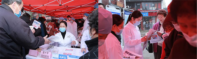 上午9:00 活动正式开始,此时市民早已排起了长长的队伍。上海蓝十字脑科医院医疗志愿服务队在科普戒烟控烟的基础上,耐心接待了前来咨询的市民,为他们测量血压,详细解答他们关于健康方面的疑惑与问题,给予用药、检查及生活等方面的指导,并向市民们发放健康科普资料,普及健康知识。