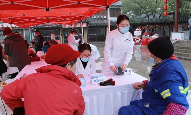 一大早,尽管天公不作美,下起了淅淅沥沥的雨,但依然抵挡不住大家的热情。上午8:40,上海蓝十字脑科医院由神经内科副主任医师孔祥玉带头的医疗志愿服务团队早早赶赴活动现场,为市民们提供健康问询、测量血量等服务。市民们参加活动的热情高涨,也是早早来到活动现场等候。