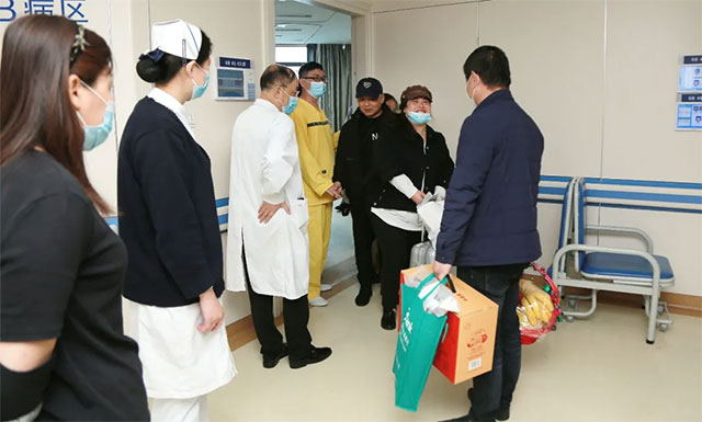 3月17日下午,家属来医院接小莫夫妇回家。此时,面对小莫家属,潘仁龙主任深情地说道:“我们已经治好了小莫,现在我把他完完整整还给你们了,以后他可以继续做自己想做的公益事业,继续救助更多需要帮助的人......”