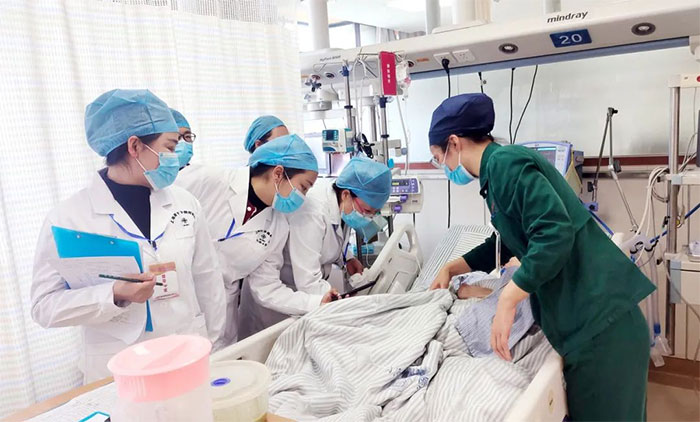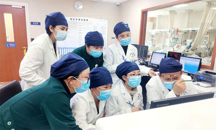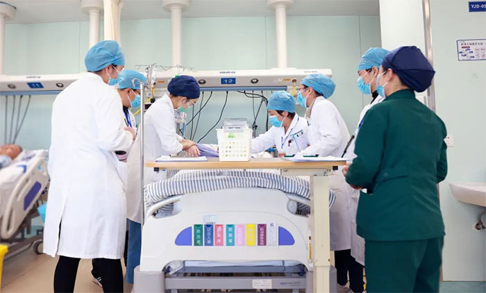 朱建英主任率领危重(手术)患者追踪组,先后督查了神经外科重症监护室、神经内科重症监护8B病区、神经外科6A及6B病区。每到一个病区,都会驻足病床旁,仔细查看急危重(手术后)患者各项护理措施落实情况,并随机抽考当值护士鼻饲、胃管、吸痰、生命体征监测等知识及技能操作。