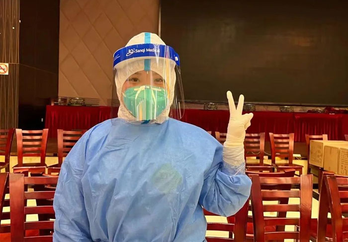 18日是鲁雨玚第二次志愿参加采样工作,19日她再一次志愿报名。她说:“作为一名党员,在疫情时刻要冲锋在前,我将用自己的实际行动践行自己的初心使命,闵行加油!蓝十字加油!”