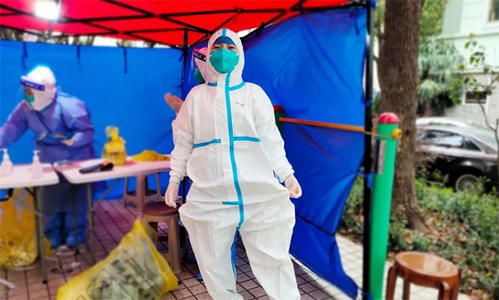 当日下午五点多蓝十字脑科又接到了小区上门单采的工作布置。7A护士长李楠楠主动请缨,与四名队友备好三十多套防护服,按照名单上门采样。每采集一批,她们就按照操作规程,更换一次防护服,一直忙到晚上8点多。再次又有新的工作布置了下来,需要到另一个已经封控多日的小区完成单采。