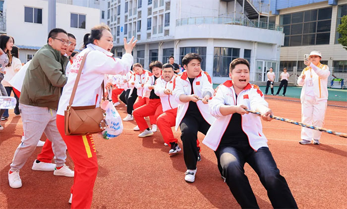 “3、2、1——拉!”“189个、190个!”在另一边的赛场上,集体拔河、集体跳绳以及鸿运彩球比赛相继开展,运动员们分配好体力、把握好节奏、运用好巧劲,纷纷勇争上游,运动场上的这一根根“粗麻绳”和“细长绳”,将运动与健康紧密联结在一起。