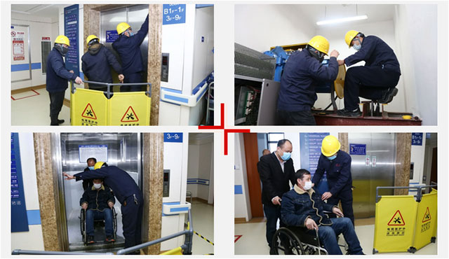 紧接着,维修人员打开电梯门,引导“病人和家属”走出电梯,同时问候人员情况。