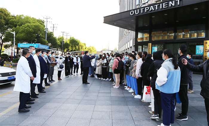 临行前,项耀钧院长带着殷切的希望叮嘱大家,一定要充分认识到这场会战的艰巨性,一定要充分发挥医务工作者专业的水平和职业素养。服从安排,听从指挥,在做好自身防护、确保安全的基础上,以最坚定的意志、最高昂的士气、最严格的标准、最认真的态度,确保核酸筛查工作的圆满顺利。