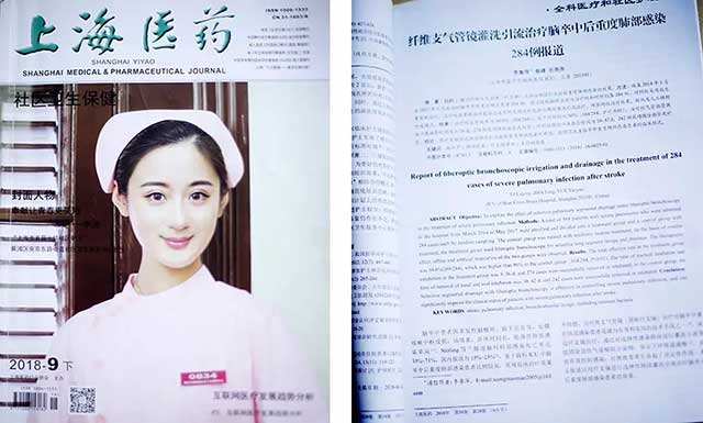 李鲁萍还与科室团队成员查峰、岳尧尧在《上海医药》2018年第九期中联合发表了题为《纤维支气管镜灌洗引流治疗脑卒中后重度肺部感染284例报道》的学术论文。