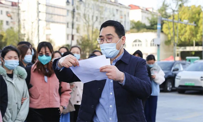 时间紧,任务重。作为老党员的潘耀良副院长,承担着整个采样队的后勤保障和联络、支援工作。这一次,他也毅然披甲上阵,亲自为居民进行核酸采样。同为党员的医务科科长朱细海,已经多次参加一线采样,这一次,他依然冲锋在前,直奔一线。
