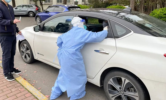 “大家一定要严格规范操作,注意保护好自己!”潘耀良副院长叮嘱好车上剩下的队员后,在大上海国际花园小区随134号点位采样队伍下了车,大步直奔采样点。