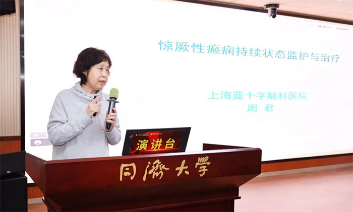 神经内科3A病区周君主任主讲的课题是“惊厥性癫痫持续状态监护与治疗”。她介绍,癫痫持续状态(status epilepticus,SE)是涉及临床多个学科的急危重症之一,是一种以反复或持续的癫痫发作为特征的病理状况,是癫痫最严重的表现形式。特别是最常见的全面性惊厥性癫痫持续状态,可因高热、循环衰竭或神经元兴奋毒性损伤等导致不可逆的多器官损伤,致残、致死率都很高。