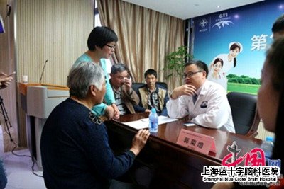现场,除了上海地区的市民外,一对来自吉林的中年夫妻和一对来自台湾地区的老年夫妻来到上海就医,刚好遇到上海蓝十字脑科医院专家进行问诊,根据自身的病情,赶紧进行咨询。