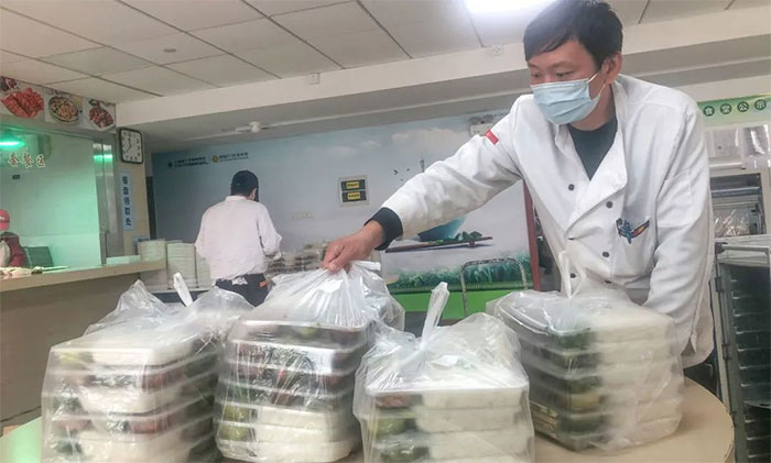 连日来,所有食堂人员均“战斗”在灶台边,从凌晨四点左右准备早餐,一直忙碌到晚上六七点,每天持续工作12小时以上,他们紧张忙碌着备餐、消毒、分装、检查、配送,各项工作井井有条。所有工作人员每天一次核酸,配餐送饭严格落实到人,确保食品安全。