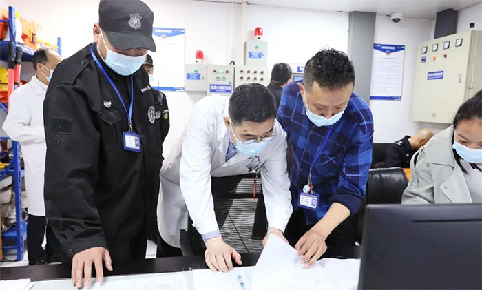 检查组一行先后深入10楼设备房、医生休息室、8楼静脉输液集中配置室、7楼病区、负一楼影像科、消防控制室、消防泵房、消防强排室、空调机房、缓冲病区等消防重点部位,逐一排查各场所电器线路安全情况,相关设备标识是否准确,各个消防通道、安全出口是否通畅,并重点查看医院的消防安全管理责任制度落实情况、危险化学品管理情况、应急演练预案情况、消防器材使用情况、以及应急照明、安全指示灯、消防警报按钮、灭火器等是否完好、值班人员在岗情况等。