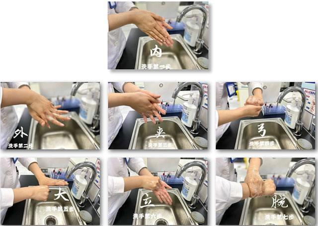 “内——外——夹——弓——大——立——腕——”随着护士长舒畅的口令,大家进行分步骤洗手操作程序。