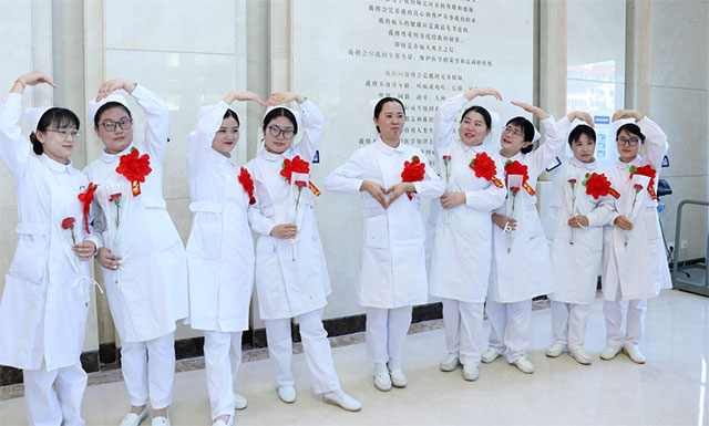 5月12日上午9:30,医院门诊大厅格外庄重喜庆,十名佩戴红色胸花的护士整齐地站立着,总经理兼书记朱敏、院长项耀钧等医院高层管理团队、公司特聘护理专家朱建英教授逐一为她们颁发“优秀护士”荣誉证书。这是2020年5.12国际护士节“优秀护士”表彰大会最荣耀的一幕。