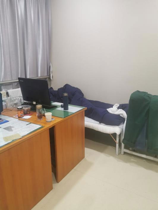 从3月下旬始,李世平主任一直吃住在办公室,每天除了出诊、会诊,带领团队查房、询问病情、确定治疗方案、实施人员隔离,还注重在心理上对患者进行疏导,对患者提出的需求,只要能做到,他总会尽力满足。期间,李世平主任不幸感染。治疗、隔离之际,他从未落下科室防疫和医疗工作:4楼两个病区的医生排班、日报表,指导科室危重患者抢救,协调护士工作,床旁电话对患者、家属和团队情绪进行安抚、每晚医院中层视频会议等,从没真正休息过一天,24小时随时待岗是常态。