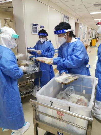 在李世平主任的带领下,团队医护人员也都扛起使命感和责任感。关键时刻,医生李芳、程雪峰和医助凡恪光、吴魏丽挑起了医疗重担,管理两个病区患者,并一起分担科室核酸采样、患者餐食发放、物资搬运、垃圾清运、环境预防性消杀等工作。病区危重患者较多,情况复杂,患者的每一个体征变化都不能放过,他们争分夺秒分析研判,根据不同情况,精准施策。疫情以来,险情频发,经常是通宵达旦抢救患者,他们一直与时间赛跑、与死神较量,期间共抢救患者10余名,不曾休息,黑白班来回倒,个中艰辛,难以言喻。“现在这个阶段就像是在走钢丝,无论是疫情还是危重症的患者。但是我们做医生的,更要努力救治患者。既然选择这个行业,就要勇往直前。”李芳医生说。