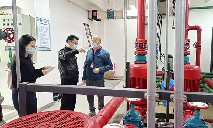 医疗场所建筑结构复杂、人员密集,尤其是高楼层区域,一旦发生火情,人员快速疏散撤离面临着重大考验。检查组首先来到负一楼消防水泵房,检查消防水泵控制柜供电、管网压力等是否正常。随后来到安保消防控制室,检查医院消防安全制度、值班记录等是否完整详实。