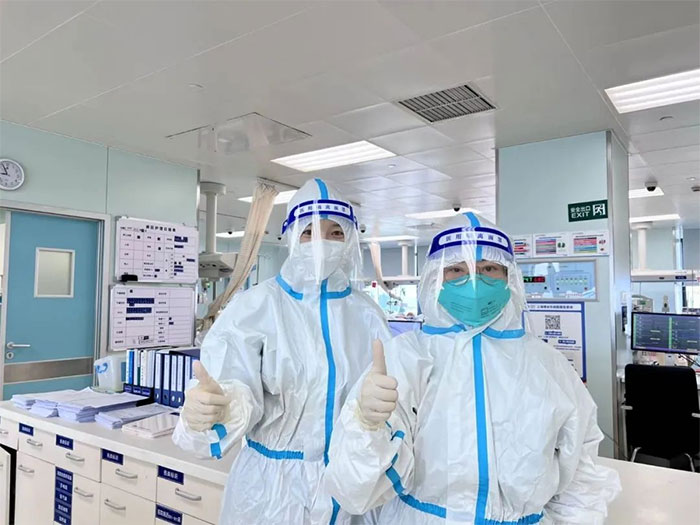 当科室里一位护士和一名保洁人员先后核酸检测异常后,赵枫主任和赵得梅护士长沉着应对,第一时间配合医院迅速开展阳性人员转运隔离,并同步开展流调,寻找可能的传播途径。通过耐心细致的排摸,发现了监护室与麻醉科相通的通道,以及一台保洁用电梯存在病毒传播隐患,便立即采取措施堵住漏洞、杜绝了隐患。