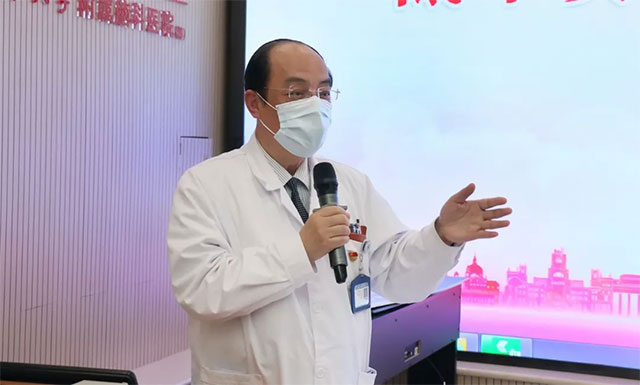 带教老师代表、神经外科6B病区潘仁龙主任介绍了科室人才梯队建设和规范化培训情况。潘主任指出,医教研工作不能放松,规范化培训至关重要。目前上海蓝十字脑科医院发展迈上了新台阶,各个科室主任都是精兵强将,每个学科都在蓬勃发展,广大学员赶上了好时机。他希望诸位学员学习前辈们默默无闻、脚踏实地、戒骄戒躁的工作作风和时刻以病人为中心的强烈责任心,学习如何与病人进行良好沟通的技巧,以过硬医术和良好温馨的服务让广大患者满意。