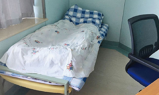 ▲ 搭个简易床铺,休息室就是李鲁萍的“家”
