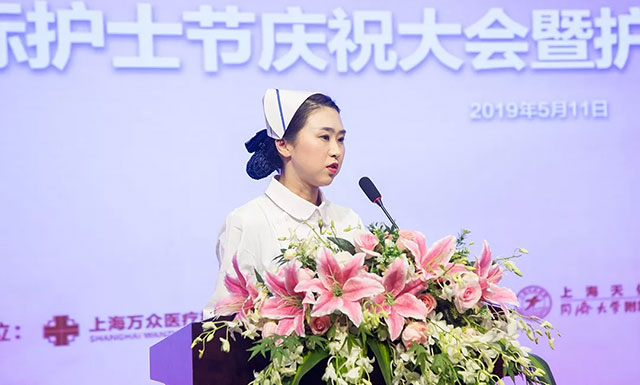 ▲ 在万众公司2019年5·12护士节大会上发言催人泪下