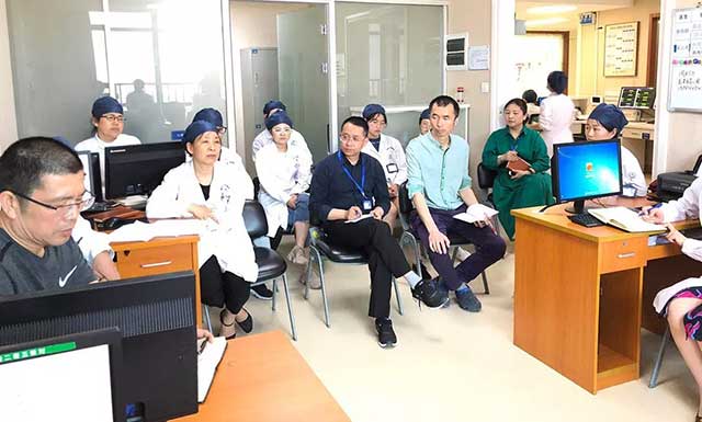 当天下午四点,项耀钧院长等来到神经内科ICU 8B病区。科主任就科室管理、科室医疗质量情况、人力需求、医疗设备需求、药物使用等相关情况作了汇报,并就病历管理等提出相关建议。